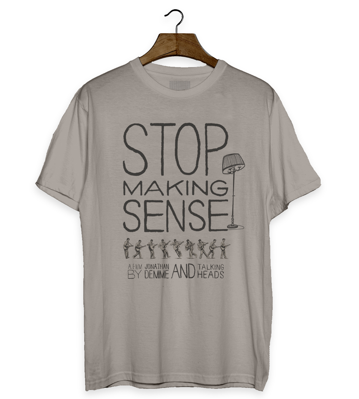 Camiseta com estampa sobre o show Stop Making Sense, da banda Talking Heads, e dirigido por Jonathan Demme.