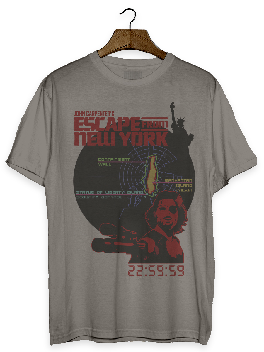 Camiseta com estampa sobre o filme Escape From New York, do diretor John Carpenter.